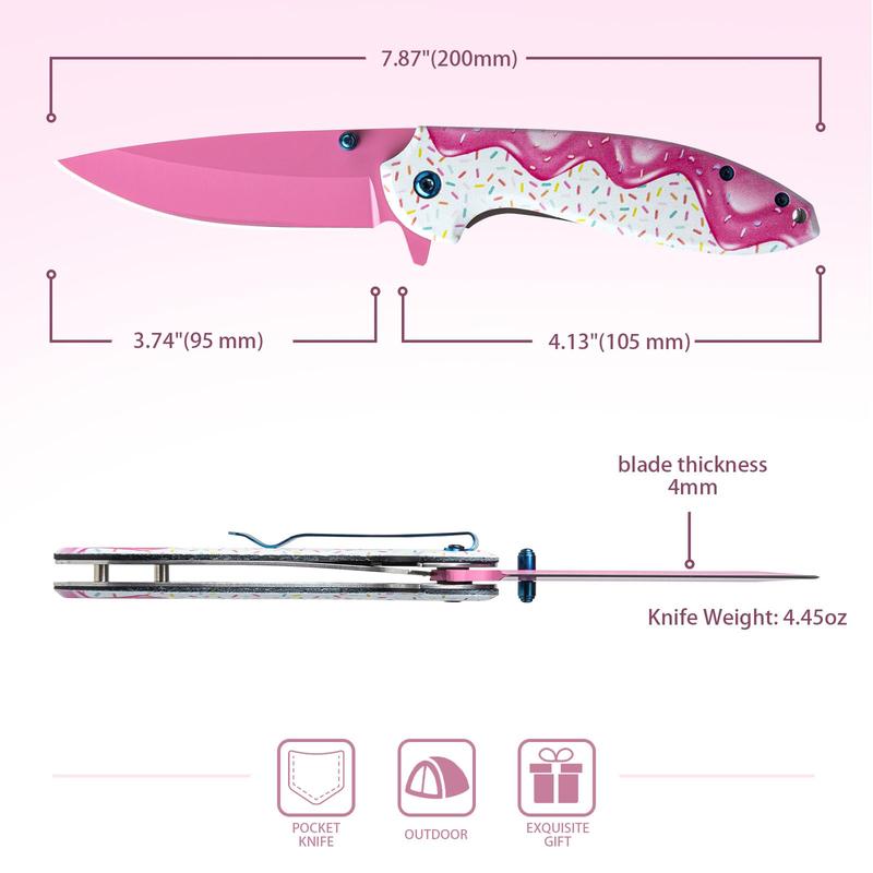 1 Pc 7.5 Inch Pink Decorative Pocket Knife, Camping Tool Folding Knife for Skinning, Fishing, Camping, Hiking